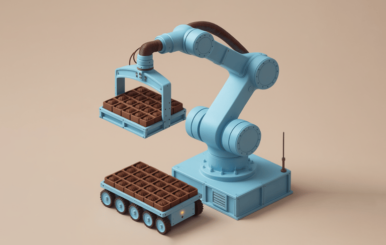 We engineered a chocolate production line minimising moving parts. By utilising robots and autonomous vehicles for transport and processing, eliminating conventional conveyors, we delivered a highly advanced, decoupled system for chocolate production.